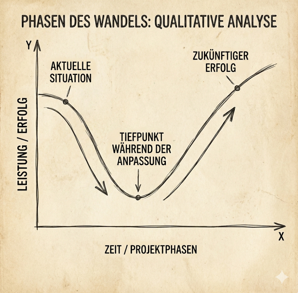 Mit einem Blick auf diese Definition von Reifegraden lässt sich unmittelbar erkennen, dass es nicht damit getan ist, jeder Mitarbeiterin und jedem Mitarbeiter einen ChatGPT-Account zu verschaffen, wenn sich die Nadel wirklich bewegen soll. Das soll nicht heißen, dass dies nicht trotzdem sinnvoll ist. Im Gegenteil: Die Nutzung und damit das Erlernen und die Gewöhnung an die Arbeit mit KI ist ein wichtiger Erfolgsfaktor. Vielleicht sogar mehr als das, nämlich das Fundament auf dem die großen Erfolge stehen können. Es muss nicht ChatGPT sein, aber eine möglichst vielfältige Unterstützung und Befähigung sowie eine vielfältige Tool-Landschaft sind gerade in der ersten Stufe wichtig. Während der Reifung der einzelnen Personen und der Organisation im Umgang muss auch mit Rückschlägen gerechnet werden - es könnte also sein, dass es erst einmal schlechter wird, bevor es besser werden kann.